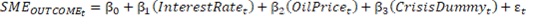Regression analysis findings Turning to the econometric analysis, our baseline OLS regression of SME performance on the interest rate provides results consistent with expectations, although statistical significance is modest. In the regression of SME GDP share on the policy rate (with oil price and crisis dummy controls), the coefficient on the interest rate is negative (indicating an inverse relationship with SME performance) but not statistically significant at conventional levels. In one specification, the interest rate coefficient is approximately –0.25 (suggesting that a 1 percentage-point higher policy rate is associated with about a 0.25 percentage-point lower SME share of GDP on average), with a standard error of about 0.18 (p ~ 0.20). The oil price coefficient is positive (higher oil prices weakly associated with a higher SME share, perhaps via general economic growth) but also not significant. The crisis dummy is strongly significant and negative – the years 2015–2017 saw an SME share roughly 1.5–2.0 percentage points lower than the prevailing trend, after controlling for other factors. Table 3. Augmented Dickey–Fuller (ADF) Test Results