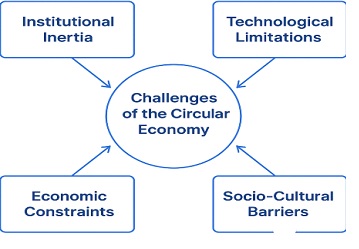 Diagram 2. Challenges of the Circular Economy This diagram visually summarizes the four major categories of barriers discussed in your article: ü Institutional Inertia – Legacy regulations, misaligned policies, lack of governmental capacity. ü Technological Limitations – Insufficient infrastructure, costly innovation, uneven access to circular technologies. ü Economic Constraints – High initial costs, low ROI, market failures, externalized environmental costs. ü Socio-Cultural Barriers – Consumer resistance, lack of awareness, attachment to ownership and novelty. [3] Knowledge Gaps and Measurement Issues Consumer behavior remains a critical bottleneck. Circular consumption models such as product-as-a-service or repair and reuse require shifts in perception regarding ownership, convenience, and product value. Cultural attachment to newness, fast consumption cycles, and perceived hygiene risks (e.g., in clothing or personal care products) often obstruct market uptake. Moreover, businesses and consumers alike may lack awareness or understanding of circular options, necessitating substantial educational and behavioral change initiatives. Circularity is complex to measure. Traditional environmental and economic indicators inadequately capture the systemic nature of CE. Diverse definitions and taxonomies across institutions lead to inconsistencies in data reporting and impact assessment. [4] There is a need for unified metrics that can measure material circularity, social impact, and systemic resilience. Furthermore, academic and practical research remains siloed, limiting cross-sector knowledge exchange and innovation. Despite challenges, some industries and cities have demonstrated successful CE implementation. For example, Amsterdam has developed a city-wide circular strategy incorporating building materials, organic waste, and procurement policies. Companies like Philips and IKEA have integrated circular principles into product design and business models. However, these cases often benefit from unique regulatory support, access to innovation ecosystems, or consumer demographics favorable to circular models, raising questions about scalability and transferability. [2] Strategic Pathways Forward To address the above challenges, several strategic actions are proposed: ü Policy alignment: Harmonizing regulations and incentives at multiple governance levels to support circular initiatives; ü Public-private partnerships: Leveraging collaboration between industries, governments, and academia to drive innovation and resource sharing; ü Investment in infrastructure and R&D: Supporting the development of circular technologies and logistics systems; ü Education and engagement: Promoting awareness and capacity-building to foster behavioral change and cultural acceptance; ü Metrics and standardization: Developing internationally recognized circularity indicators to guide investment, policy, and business strategy. [4] Conclusion The circular economy holds transformative potential, yet its adoption faces systemic challenges rooted in current institutional, technological, economic, and cultural paradigms. Addressing these barriers requires more than isolated innovation it demands a comprehensive redesign of socio-economic systems. With coordinated efforts and strategic foresight, the circular economy can evolve from an aspirational vision to a practical and inclusive model for sustainable development. The transition to a circular economy holds transformative potential for achieving sustainable development, yet it is obstructed by a complex web of institutional, technological, economic, and cultural barriers. Despite strong conceptual appeal and localized successes, the widespread implementation of circular principles remains hindered by systemic inertia and fragmented efforts. This article has highlighted that overcoming these barriers requires more than isolated initiatives; it demands a coordinated, systems-level approach involving regulatory reform, cross-sector collaboration, infrastructure investment, and societal engagement. Addressing measurement gaps and aligning incentives across governance levels will be essential to ensure accountability and guide strategic action. Ultimately, embedding circularity into the core of economic systems calls for a redefinition of value one that prioritizes resilience, regeneration, and long-term sustainability over short-term gains. As global pressures intensify, advancing the circular economy is not only a strategic opportunity but an ecological imperative. References: